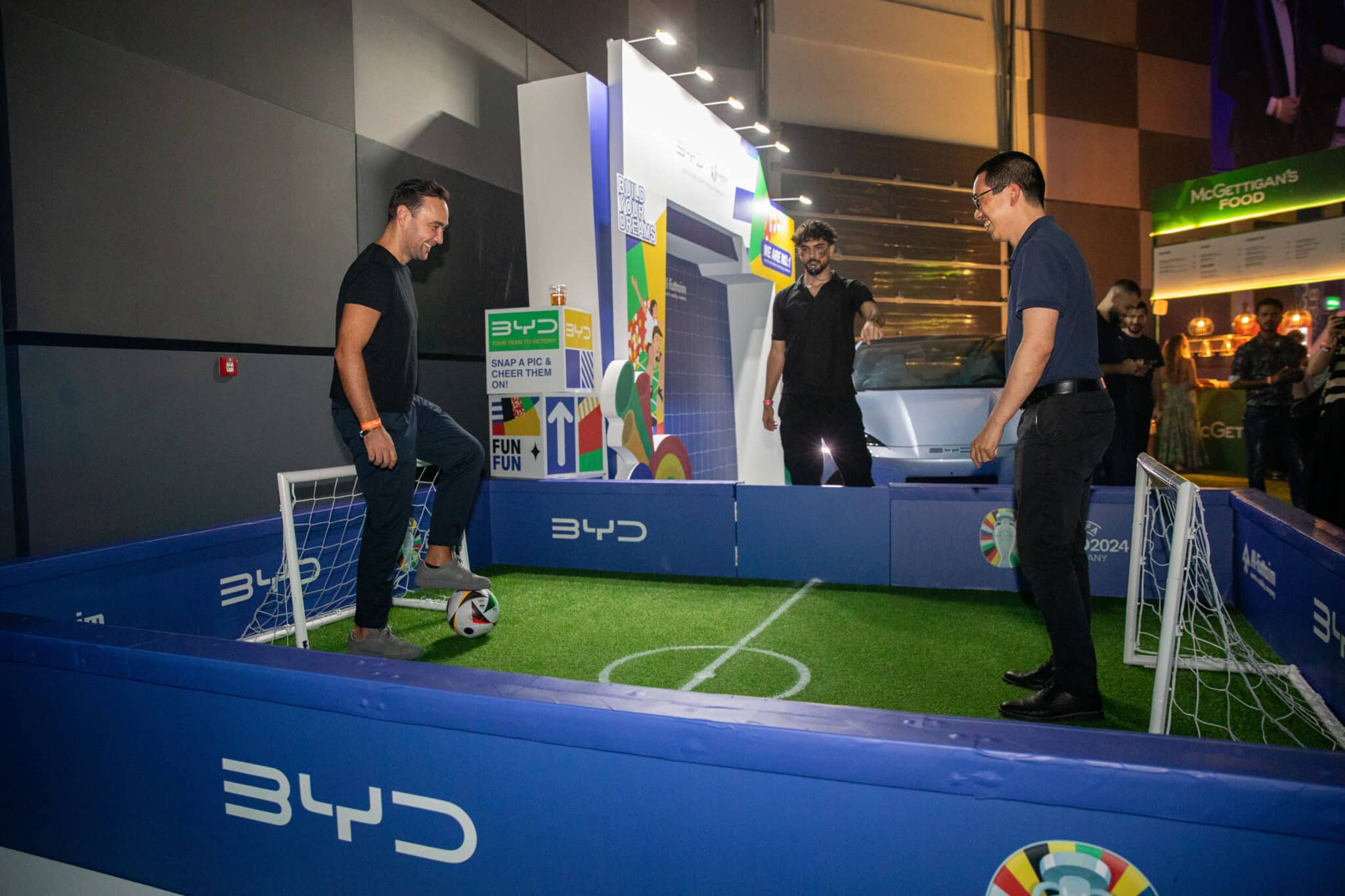 وفي ميونيخ، أقامت شركة “بي واي دي” معارض تفاعلية للسيارات الكهربائية بالقرب من ملعب أليانز أرينا، حيث يمكن للمشجعين تجربة أحدث السيارات الكهربائية للعلامة التجارية مباشرة. وتتميز هذه المعارض بتجربة قيادة تجريبية، حيث تعرض براعة شركة “بي واي دي” في تكنولوجيا البطاريات وتصميم السيارات.