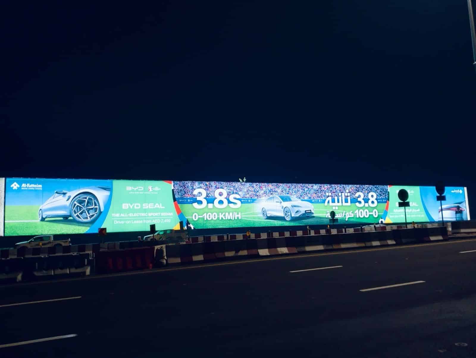 وهناك الكثير من وسائل الإعلام التقليدية مثل التلفزيون والراديو والإعلانات الخارجية مثل لوحة إعلانية عملاقة تظهر فيها سيارة "بي واي دي سييل" بالقرب من أبراج بحيرات جميرا. ويستخدم هذا الإعلان العلامة التجارية الخاصة برعاية يورو 2024، ولكنه يسلط الضوء بشكل خاص على السرعة التي تستغرقها السيارة من 0 إلى 100 كم/ساعة في 3.8 ثانية.
