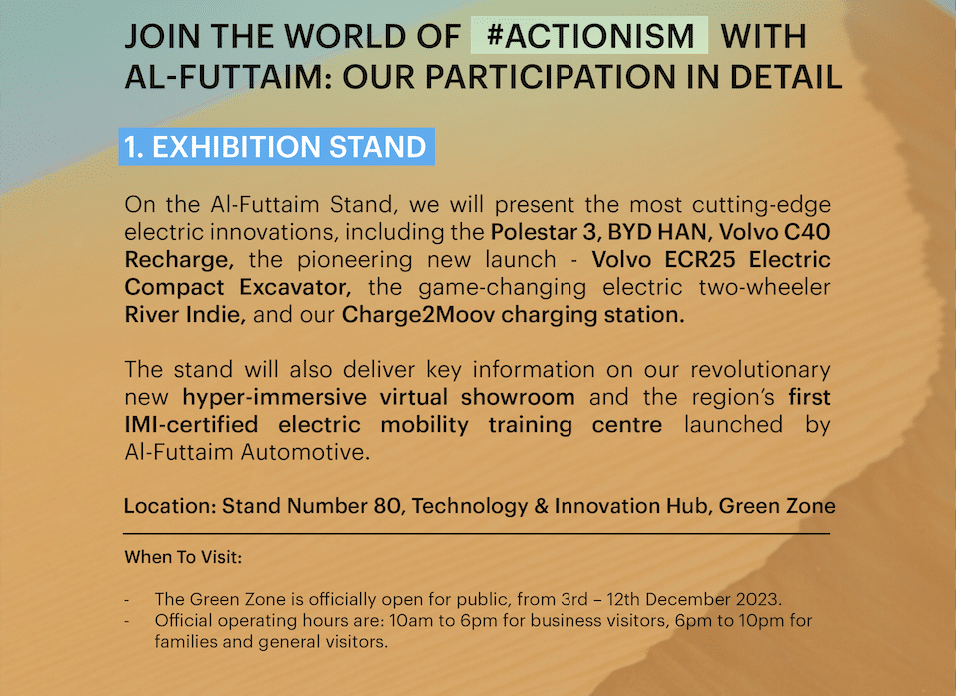هل تخطط لزيارة المنطقة الخضراء في مؤتمر كوب 28؟ سوف تجد نفسك وسط مشاهد وأحداث رائعة. فقط تأكد من ارتداء حذاء مُريح في المشي!